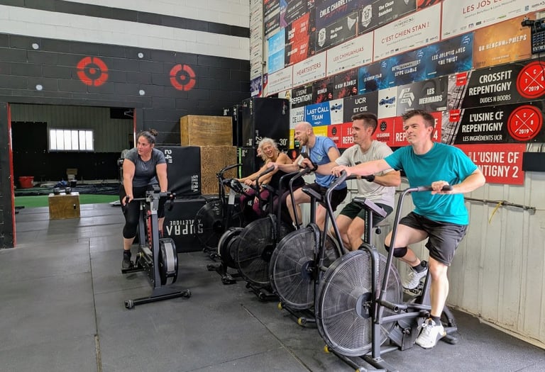 Zone de cardio: Assault Bikes, Echo Bikes, BikeErg, SkiErg… du solide pour améliorer ton endurance.